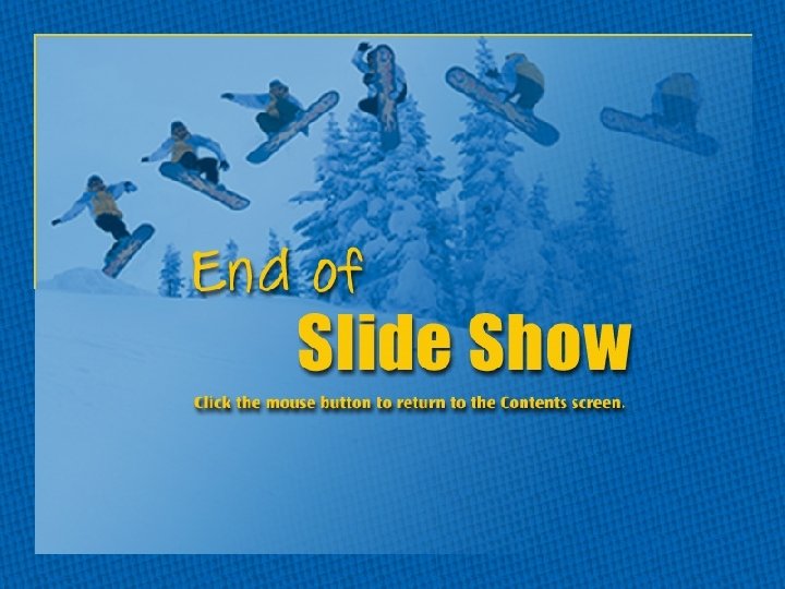 End of Custom Shows WARNING! Do Not Remove This slide is intentionally blank and is set to auto-advance to end custom shows and return to the main presentation.