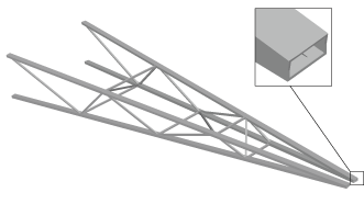 Abaqus/CAE displays beam profiles with the appropriate dimensions and in the correct orientations. Figure 3 shows the beam profiles on the whole model. Your changes are saved for the duration of the session.
